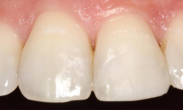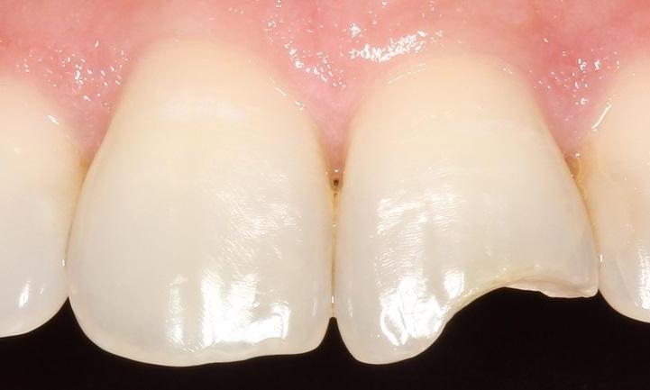 This 36-year-old man presented with discolored and aged bonding and a fracture to one tooth