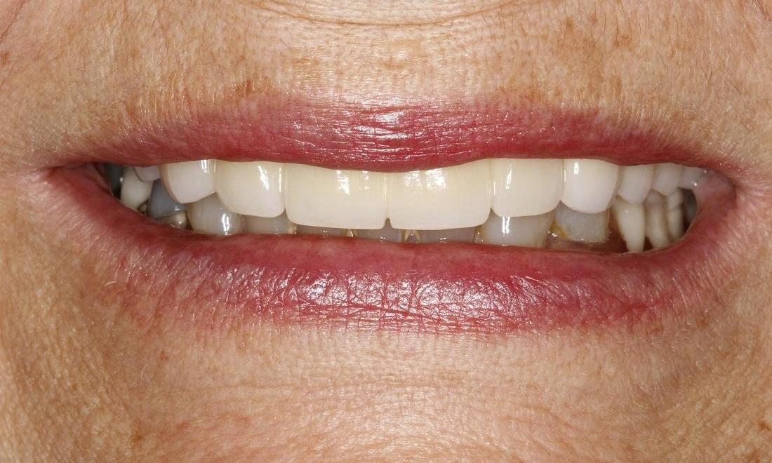 84 year old female had multiple missing teeth and failing restorations. Porcelain bridges were placed to restore function and esthetics.